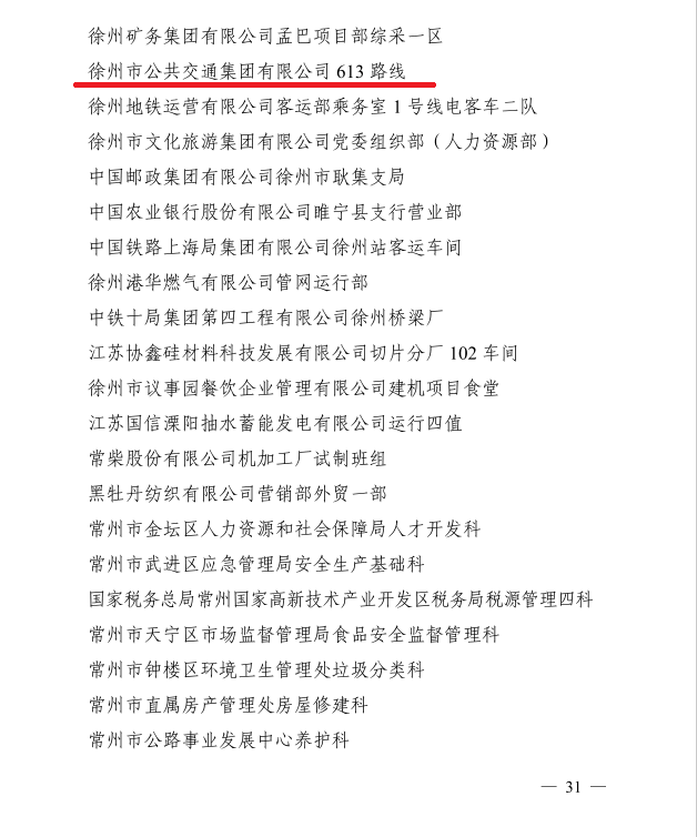 喜訊!公交613路線榮獲“江蘇省工人先鋒號(hào)”稱號(hào)