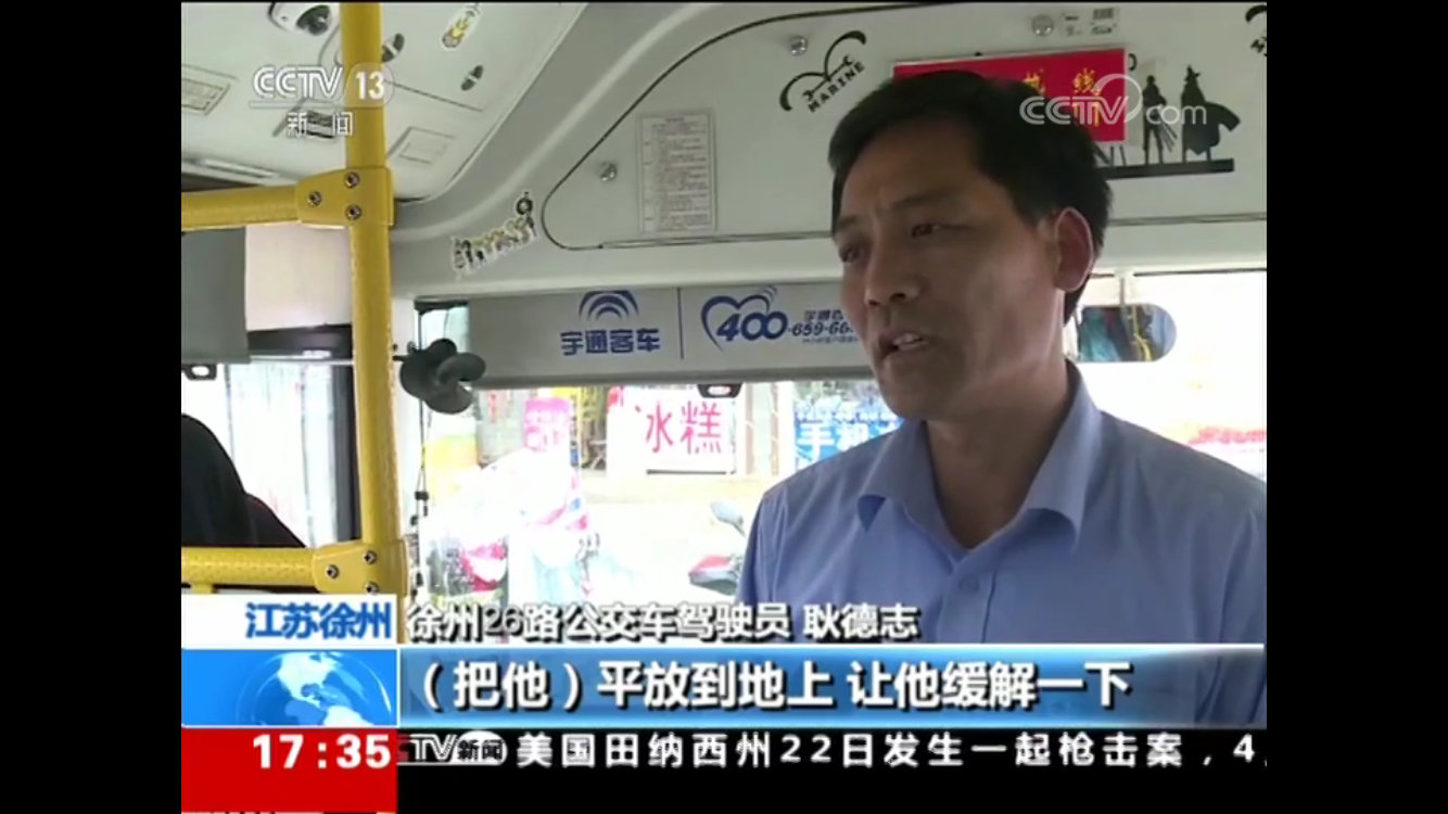 耿德志和昝昱安一邊招呼乘客前來幫忙一邊撥打120。一名自稱是護士的女乘客說男乘客是癲癇病發(fā),在乘客的齊心幫助下讓男乘客平躺在車廂,把頭歪到一邊,并防止他咬到自己的舌頭。為爭分奪秒救治患病乘客,耿德志在征得車上乘客同意、請示過公司領(lǐng)導(dǎo)后,公交車緊急變身“120”,5分鐘就將車直接開到了距離最近的徐州礦務(wù)集團第一醫(yī)院的急診室門口。耿德志在車上照顧發(fā)病乘客,昝昱安和熱心乘客一起跑到急診喊來醫(yī)護人員??吹结t(yī)護人員實施救治,并聯(lián)系到患病乘客的家人后,耿德志和昝昱安才放心地回到崗位上。
