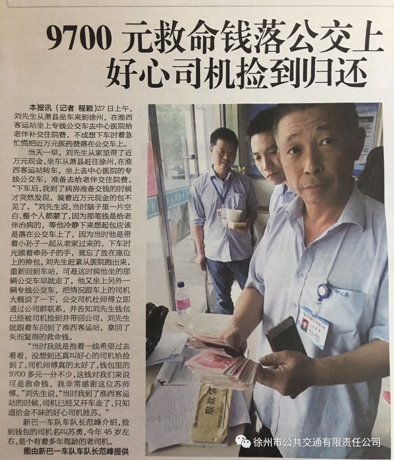 9700元救命錢落公交車上,好心司機撿到歸還