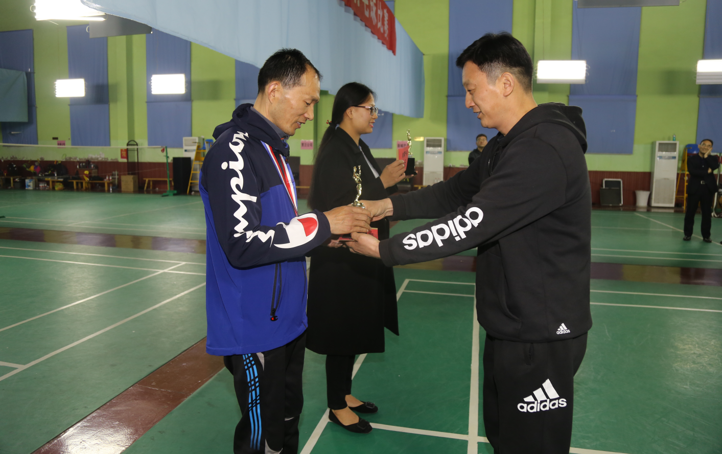 伴隨雄壯的進(jìn)行曲,12支運(yùn)動(dòng)員代表隊(duì)邁著自信的步伐,精神抖擻地依次進(jìn)場(chǎng)。公司工會(huì)副主席戚洵艇主持開(kāi)幕式。裁判員、運(yùn)動(dòng)員代表分別宣誓。黨委副書(shū)記、紀(jì)委書(shū)記、工會(huì)主席竇同銀致辭。在熱烈的掌聲中,總經(jīng)理馮陸陸宣布:徐州公交第三屆“安康杯”羽毛球賽正式開(kāi)賽!并希望各參賽隊(duì)員發(fā)揚(yáng)“友誼第一,比賽第二”的運(yùn)動(dòng)精神,賽出水平,賽出中公交人的風(fēng)采。