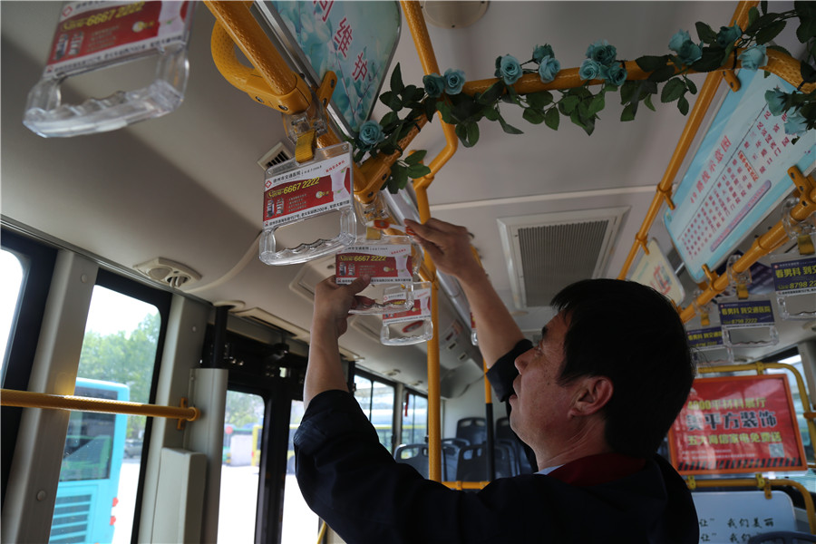 4月19日下午3點多,“嚓、嚓、嚓,嚓、嚓、嚓!”筆者在韓山停車場偶然間發(fā)現(xiàn)一輛49路車上一個忙碌的身影,正在拿著黃色牙刷在刷扶手。走上車,哦,原來是市勞模、49路四星級駕駛員王博正在利用休停時間用牙膏刷洗拉手,別說,這個小竅門還真不錯!經(jīng)過王師傅的辛勤刷洗,原本發(fā)黑的黃色拉手布煥然一新!配詩一首:
